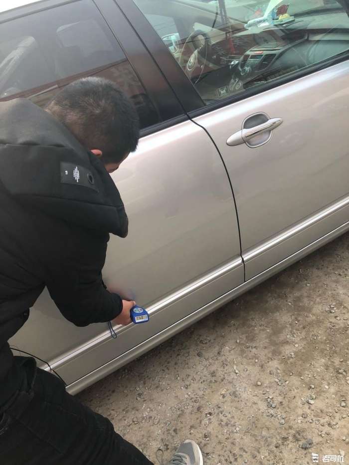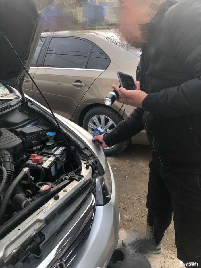 看完发动机后,这个师傅又拿出兜里的仪器,测漆面的厚度。期间还顺便用手把覆盖件边缘摸了一下,看看有没有凹凸不平的情况。漆面检测这块儿看的还算细致。