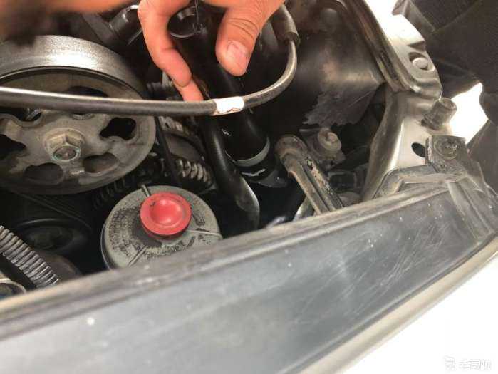 拿着手电筒在发动机舱里面四处照。问了问才得知,他在看螺丝有没有动过的痕迹。当时他扫了一眼我的水箱,然后跟我说换水箱了。