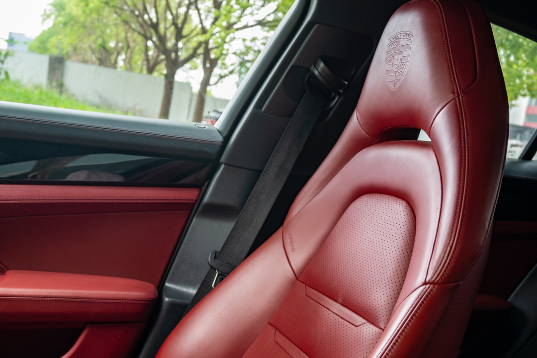 这辆车除了选装了舒适进入之外,还配了14向座椅。座椅不耐用这个特点是奢华品牌独有的,而且确实是越贵的越不耐用。本身这个座椅就偏软,保时捷的这个红色真皮表面又非常细腻,所以稍微有点压痕都显得很明显,6万多公里能保持这个成色,已经不容易了。