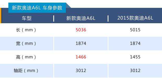 配置方面,电动调节/记忆真皮座椅、后排独立空调、Start-Stop启停系统、外后视镜自动折叠以及奥迪驾驶模式选项等配置和功能都仍将出现新款奥迪A6L上。同时,由于轴距与老款车型相同,所以在车内乘坐空间上并没有明显变化。但由于车身长度有了增加,新款A6L的后备箱或许还有扩大的可能。