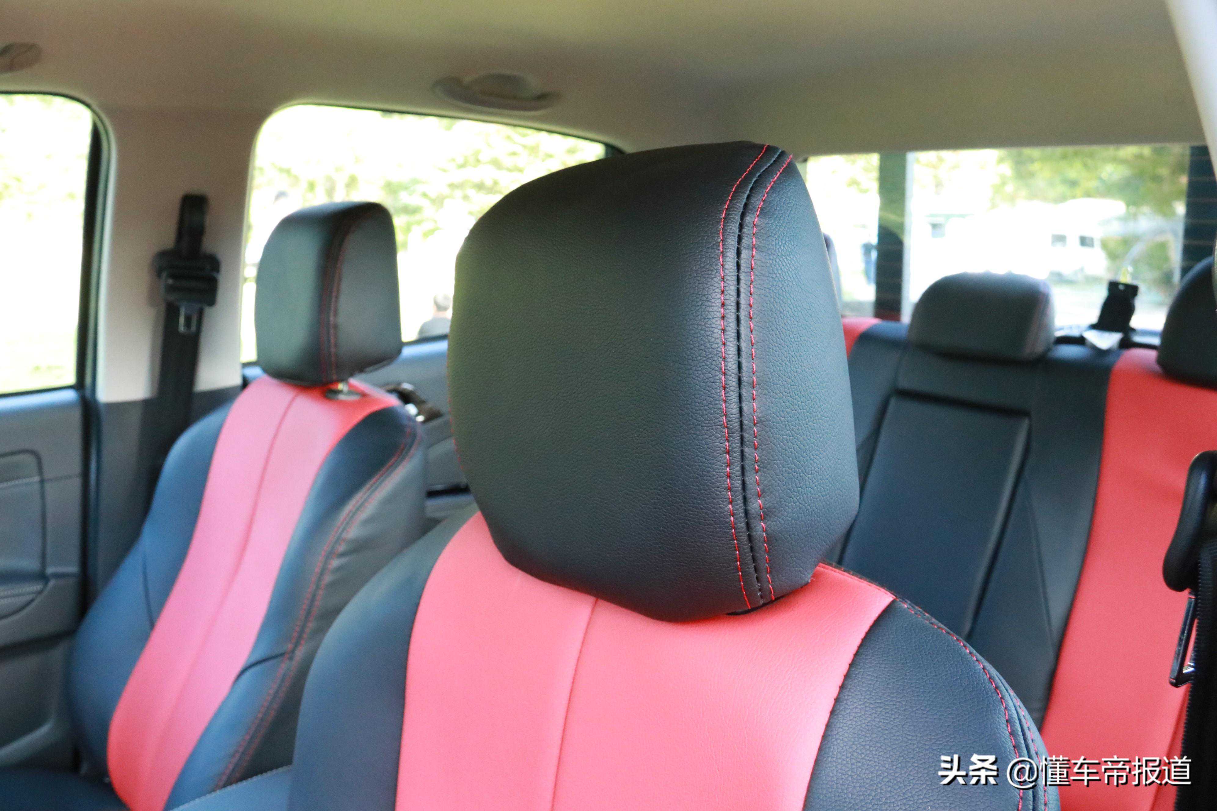 铃拓舒适的驾乘感受离不开这套柔软座椅,无论是前排还是后排表现都十分出色,虽然没有太多可靠的支撑,但凹陷感比较突出。未来头枕如果能再优化一些,整体表现将会更好。除此之外,整个座椅采用黑红拼接搭配,相比同级别的皮卡来说也更时髦一些。