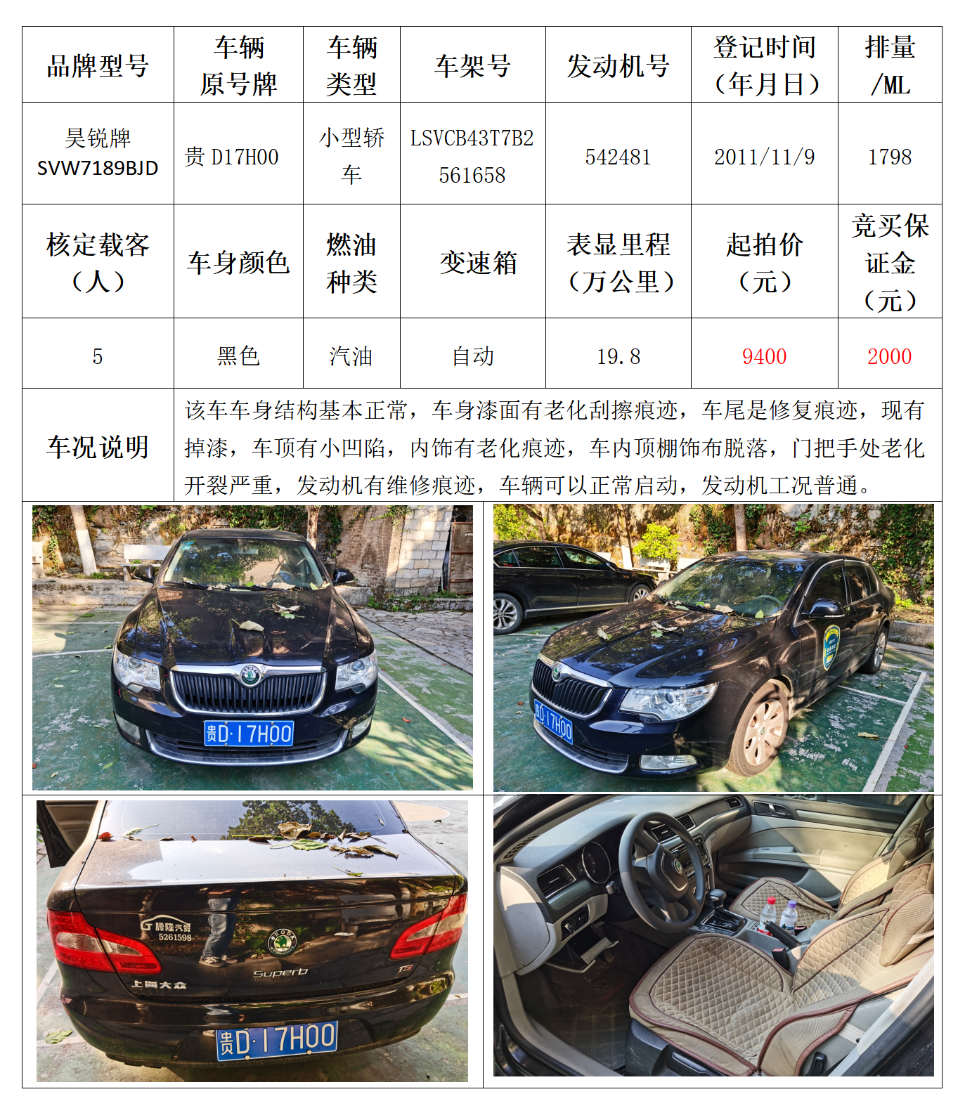拍品编号6:昊锐牌SVW7189BJD小型轿车一辆