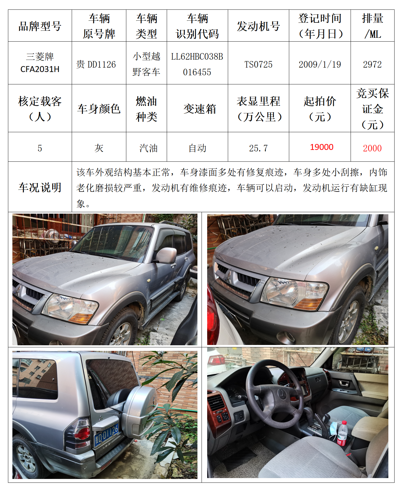 拍品编号1:三菱牌CFA2031G小型越野客车一辆