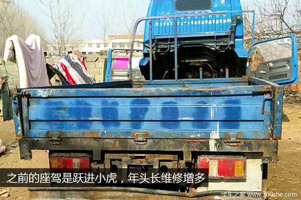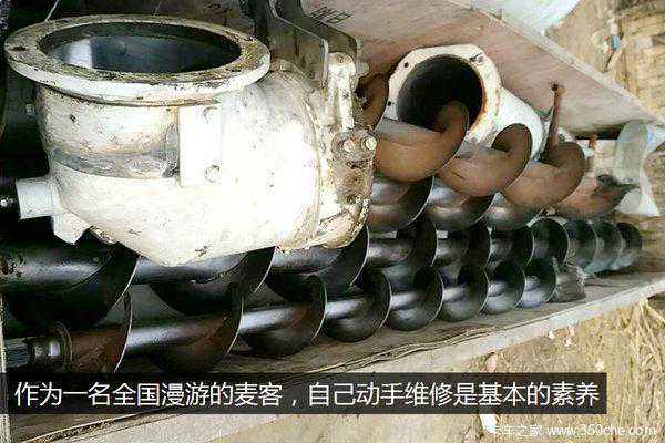 卡友久保田888目前使用的是一辆比较老旧的跃进小虎轻卡。由于旧车故障率高,所以他在转战全国的过程中练就了一把修车的好手艺。同时收割机工作的时候磨损比较厉害,平时不仅要会修车,还要会自己动手修理收割机。