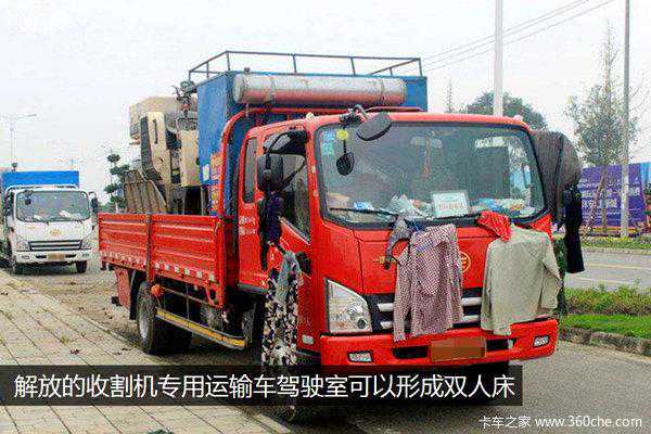 解放推出的收割机专用运输车充分考虑了居家的需求,前排座椅可以放平,和卧铺一起形成一个比较宽大的双人床,适合带卡嫂帮忙的卡友。