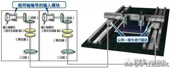 使用先进同步控制,将相同数据输出到凸轮,可实现并列驱动(串联驱动)。