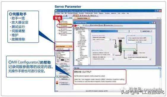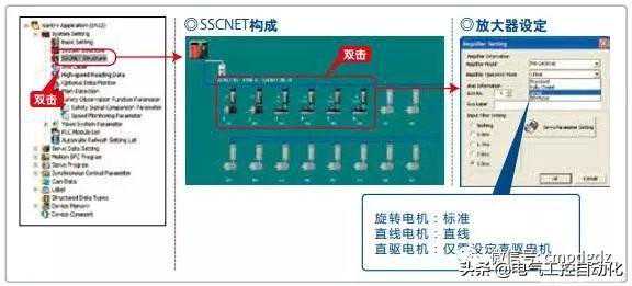 设定伺服放大器、伺服电机。