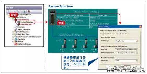 在系统构成画面中进行伺服放大器、伺服电机的设定。