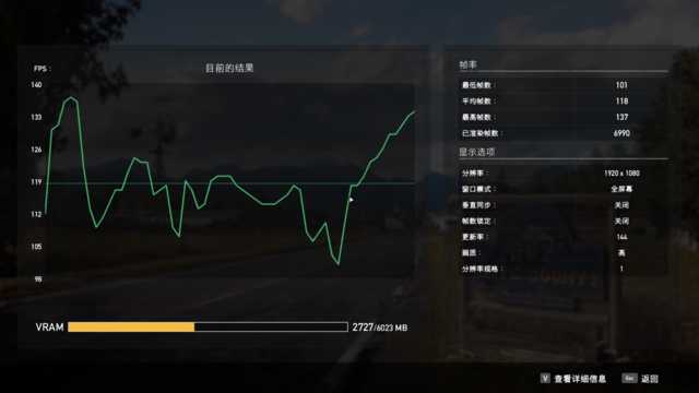 测试《FarCry5》,同样在1080P分辨率下开启高特效,微星星际战神GL76的平均帧率则可以稳定在118FPS。