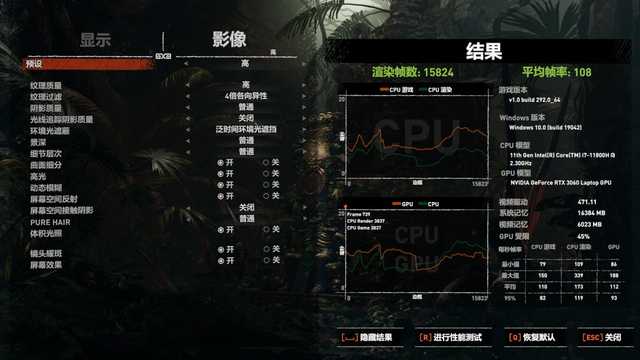 在游戏《古墓丽影:暗影》中,开启高特效,微星星际战神GL76可将平均帧率稳定在108FPS,轻松无压力。