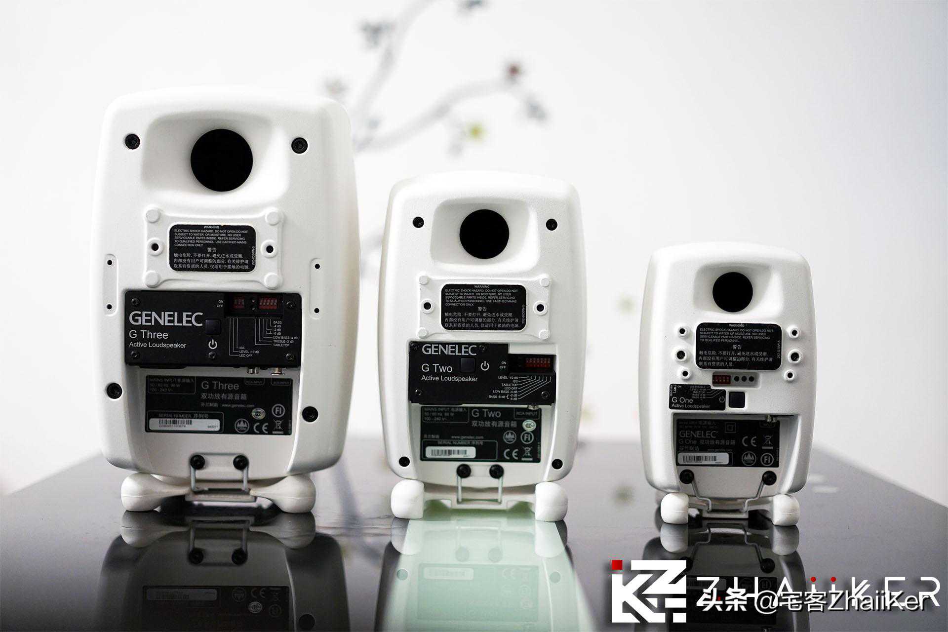 此前我们做过真力G1的评测时说过,G系列箱体的外观设计是基本一致的,三个型号放在一起,真的很可爱!材料方面,整体采用的是铝制外壳,正面两个单元,分别是高音以及中低音单元。因尺寸大小不同,重量上也会有所差异,G3的重量基本上一只手就别想拎得起来了。箱体的背部大致也一样,只不过接口以及电子分频控制的功能开关也略有不同。G1只有一个RCA莲花接口,5个功能开关,分别是ISS(自动休眠)、音量衰减-10dB、TABLETOP(桌面音色改善功能)、低音衰减2dB以及低音衰减4dB。而G2则比G1多了两个功能键,分别是LEDOFF以及LOWBASS衰减4dB功能,LEDOFF如字面所述,即前置显示灯关闭的意思,可以在暗室欣赏的时候不影响视觉效果,尤其是藏在投影幕布后面的情况下。而LOWBASS-4dB则是指重低音衰减4dB,可以得到更好的低音效果,而G3则在G2的基础上又增加了BASS-6dB(低音衰减-6dB)的开关选项,但同时除了有RCA莲花接口外增加了XLR平衡输入接口,进一步提高线材兼容性以及提升音质表现。