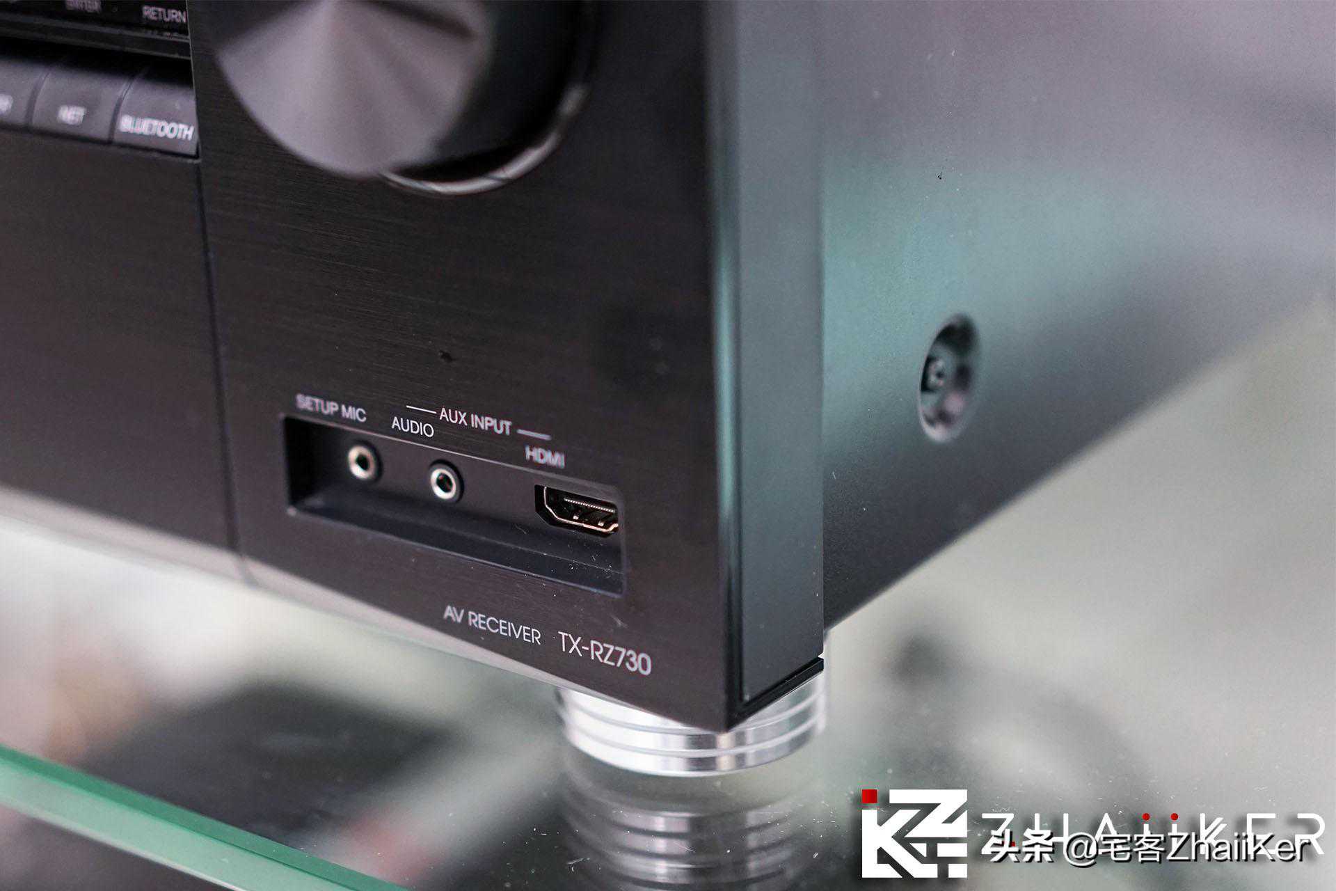 设有前置HDMI,旁边的接口可连接收音麦克风,支持AccuEQAdvance音场校正。相比起同期推出的TX-RZ830,TX-RZ730就不设前揭盖的设计,不过都有各种信号源以及设定的快捷键。