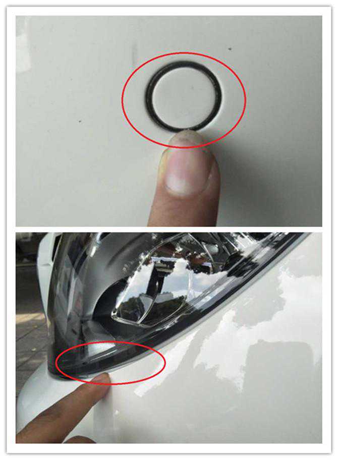 前后杠多处存在明显的漆雾(喷漆不到位留下的痕迹),通过这些漆雾可以断定前后保险杠有过喷漆。一般前后保险杠喷漆用漆模仪是测不出来的(因为是塑料材质),只能靠我们经验和细节去综合推断。