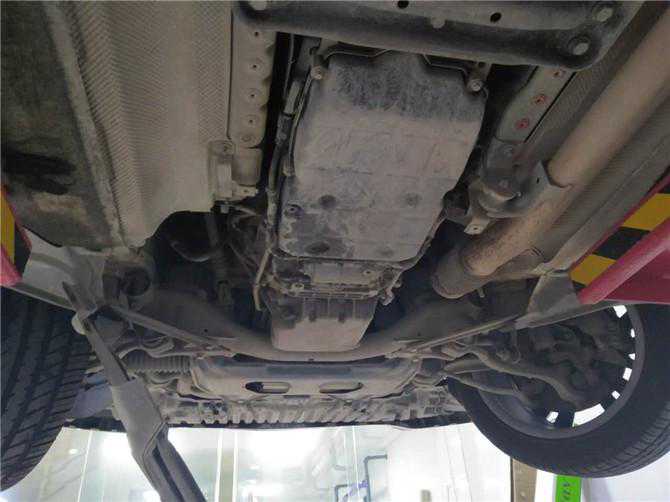 路试结束后卖家把车子开到隔壁的修理厂,对车身底盘进行一个详检。这也是小编非常不喜欢的一个环节,因为还得拆护板。但是,小编可不能怠慢,因为发动机变速箱是否漏油渗油,底盘有无拖底,大梁有无变形都得从底盘才能看出来。