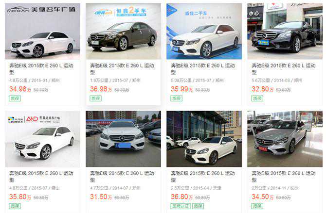 我们可以看看这网上的标价,聪明的小粉丝们可能会发现,这款E260L的网络报价完全就是一团乱麻,5万公里卖了将近36万,4万多公里就卖31万多。按照这样的跳水速度,再等5年我们是不是就可以免费提车了?