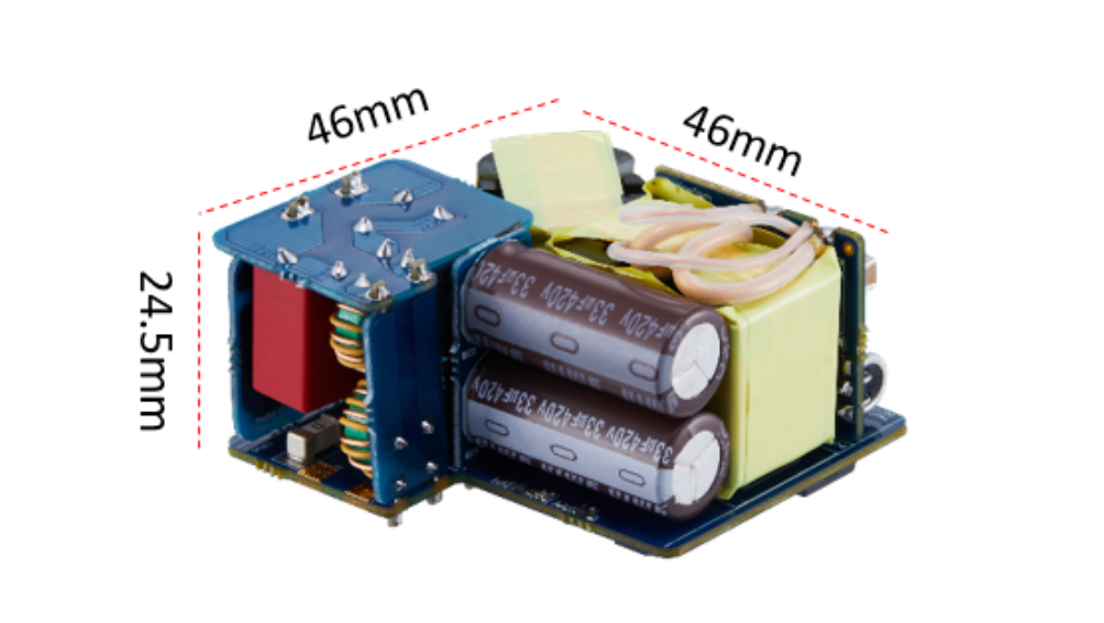 针对20W-27W市场,钰泰推出了ETA8056/8058两款,集成两款低阻抗的高压功率管IC。基于该芯片开发的0W方案PCB实测尺寸:25mm*23mm*22mm,仅硬币大小。