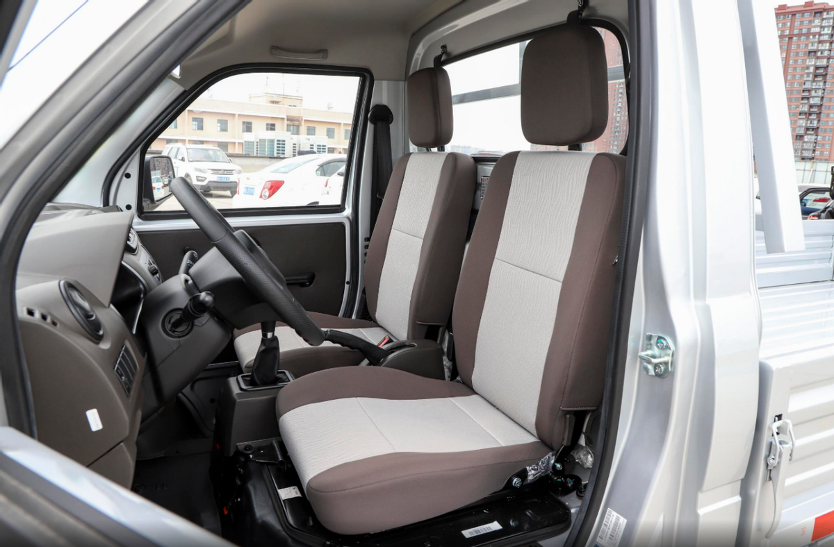对于这类工具车,要决定其是否足够实用,还是得看空间承载能力,而东风小康C31S正好有着超越同级的空间表现。东风小康C31S长宽高4730*1655*1960mm,轴距3050mm,与同级车型相比,车身数据大出一圈。依靠尺寸优势,东风小康C31S保留了宽敞的驾驶舱,主副驾座椅都支持靠背调节功能,并在内部采用加宽加厚的皮质座椅,能为用户提供相对舒适的驾驶环境。