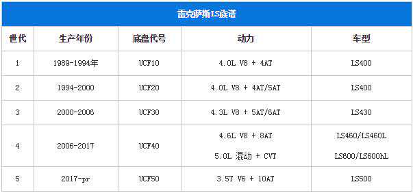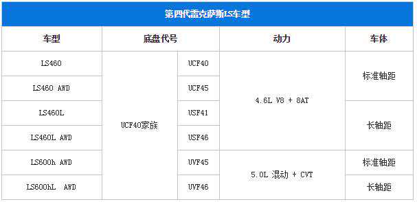 为了表述清楚第四代LS的小族谱,笔者不得不用一个表格来介绍由两套动力、两种驱动形式、两种轴距排列组合而成的六款车型阵列: