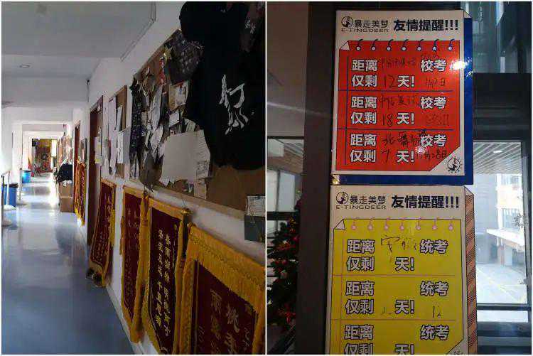 临时摄影棚由艺考机构的教室改建而成,门上挂着醒目的标牌:“考试录制中,请保持安静。”