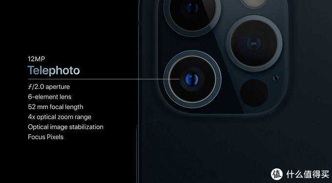 iPhone12Pro和iPhone12ProMax都后置全新的三摄系统,包括一颗视野宽广的超广角摄像头、一颗长焦摄像头,以及一颗新的广角摄像头,其中有两枚镜头在iPhone12ProMax上有更强配置,例如长焦镜头的焦段更窄,从52mm升级到了65mm,最高可以拍摄2.5倍光学变焦更长焦距影像作品。