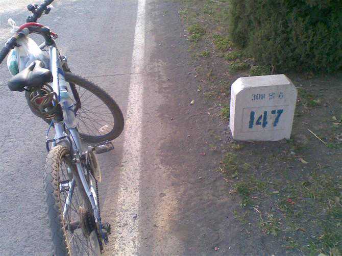 给我精神打了一击的是遇到学生放学了,路上一个初中生骑个山地车,一阵猛蹬飞一般超过我,回头看看我,然后故意让我又超过他,他再加速超过我,然后放慢速度等等,待我跟他平齐了,再猛蹬车子超我,来回玩了我四五回,心力憔悴的我懒得搭理他,虎落平阳被犬欺啊,干脆停下来,在路边喝水休息。等他走远了,我才拖着自己濒临崩溃的身体继续上路。没办法,想教训他可是有心无力。。。。
