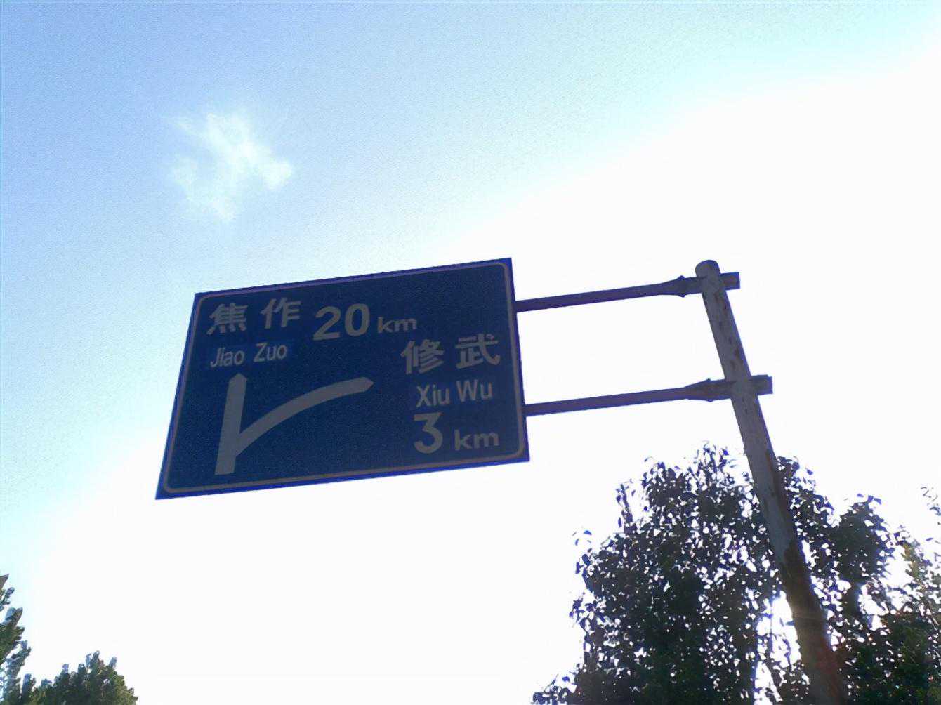 慢悠悠的骑到一个不知道是什么桥的地方,很小的一个桥,看到这个牌子,距离修武还有3公里,离焦作还有20公里。