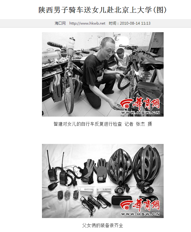 快到鹤壁的时候,路遇一位骑友大叔在路边休息,我就停下来搭话。然后就一块启程边走边聊。大叔已经56岁了,从北京出发骑行到西安。遇到我那天是从邯郸市出发的,5点多就出门了,目标是天黑前到达武陟县。因为我赶早不赶晚的心态一路狂奔,追赶上了他的进度。这大叔可不是普通人,2010年曾带女儿上大学从西安骑行到北京报道,花了14天共计1200公里,还上了新闻。