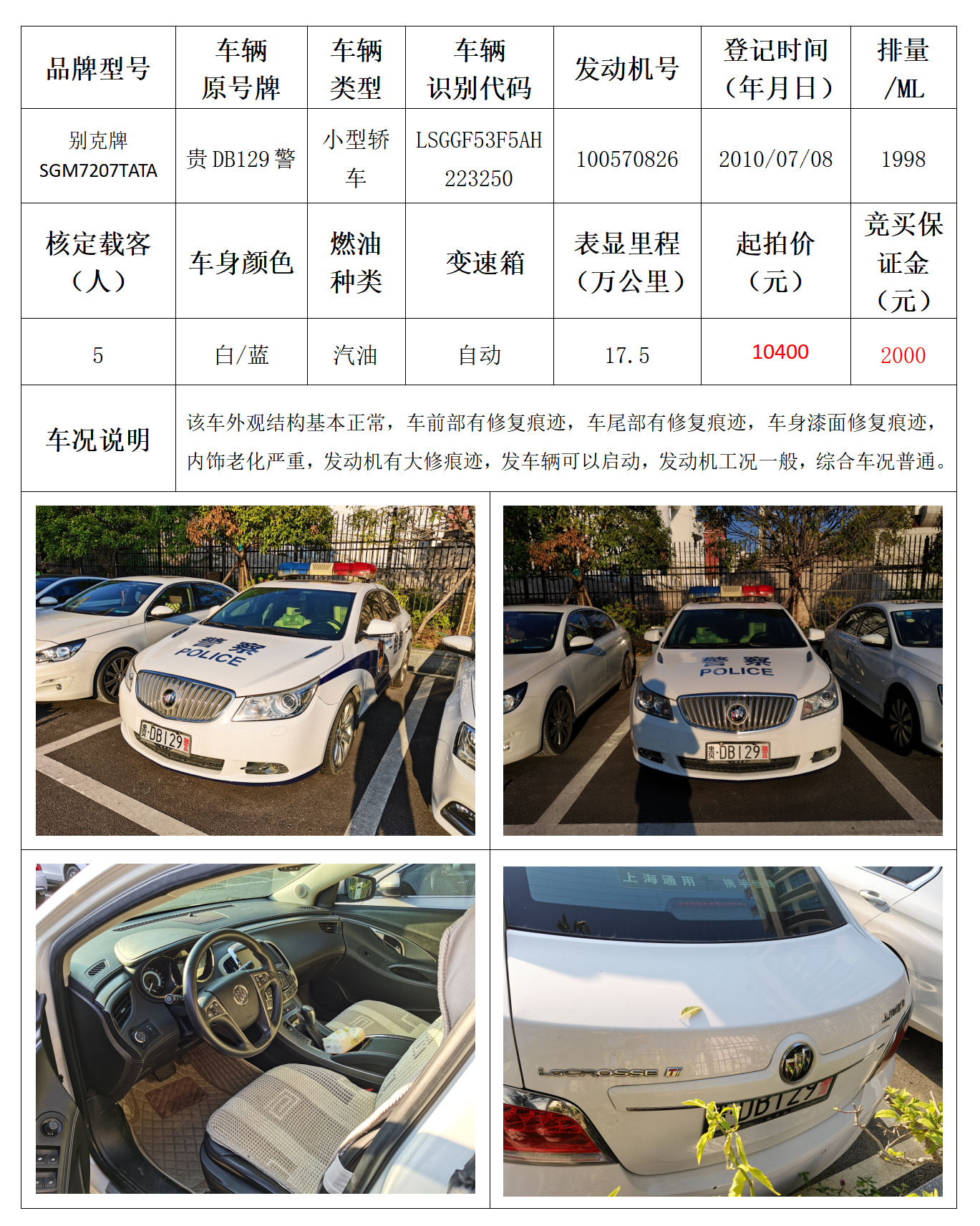 拍品编号9:别克牌SGM7207TATA小型轿车一辆