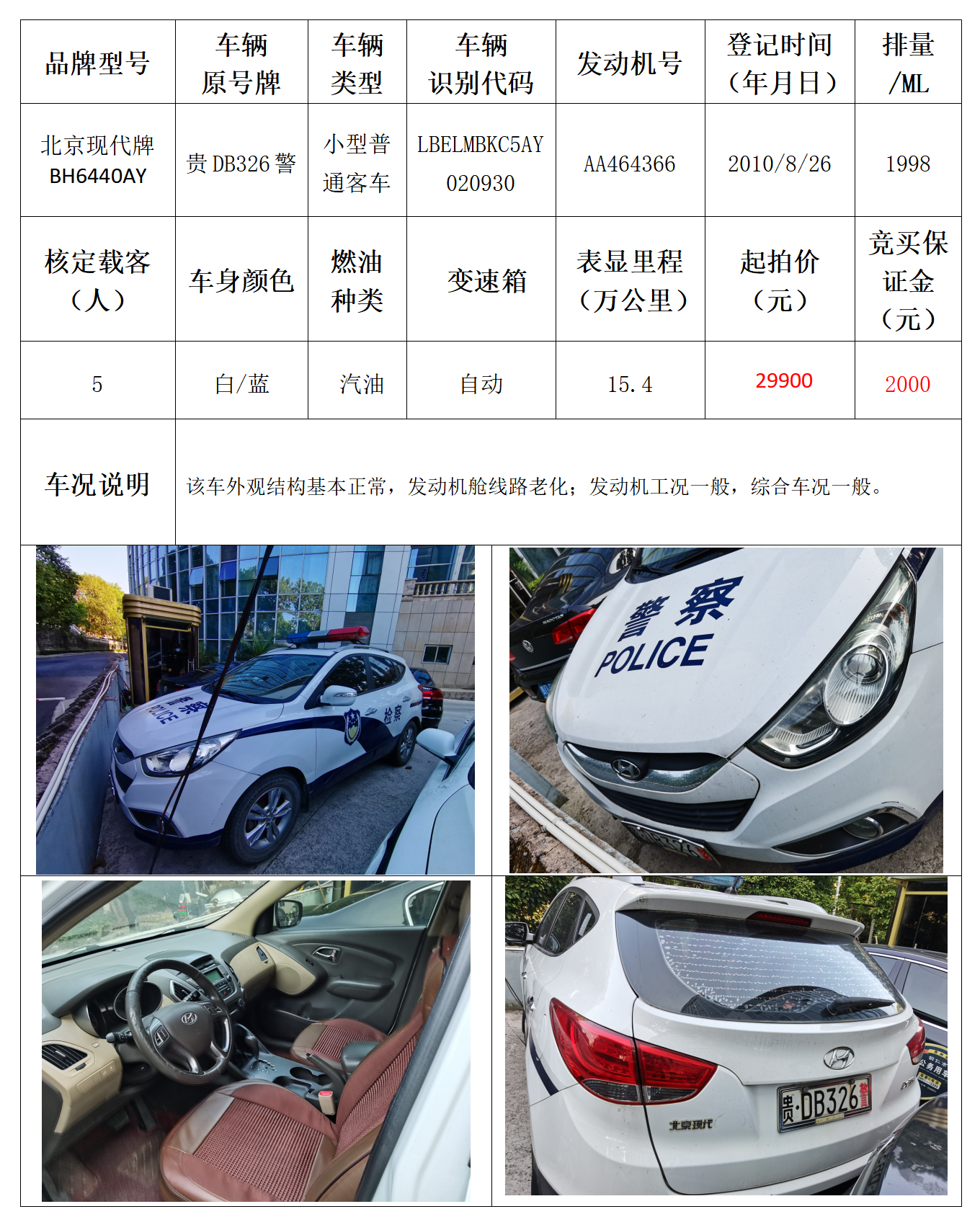 拍品编号14:北京现代牌BH6440AY小型普通客车一辆