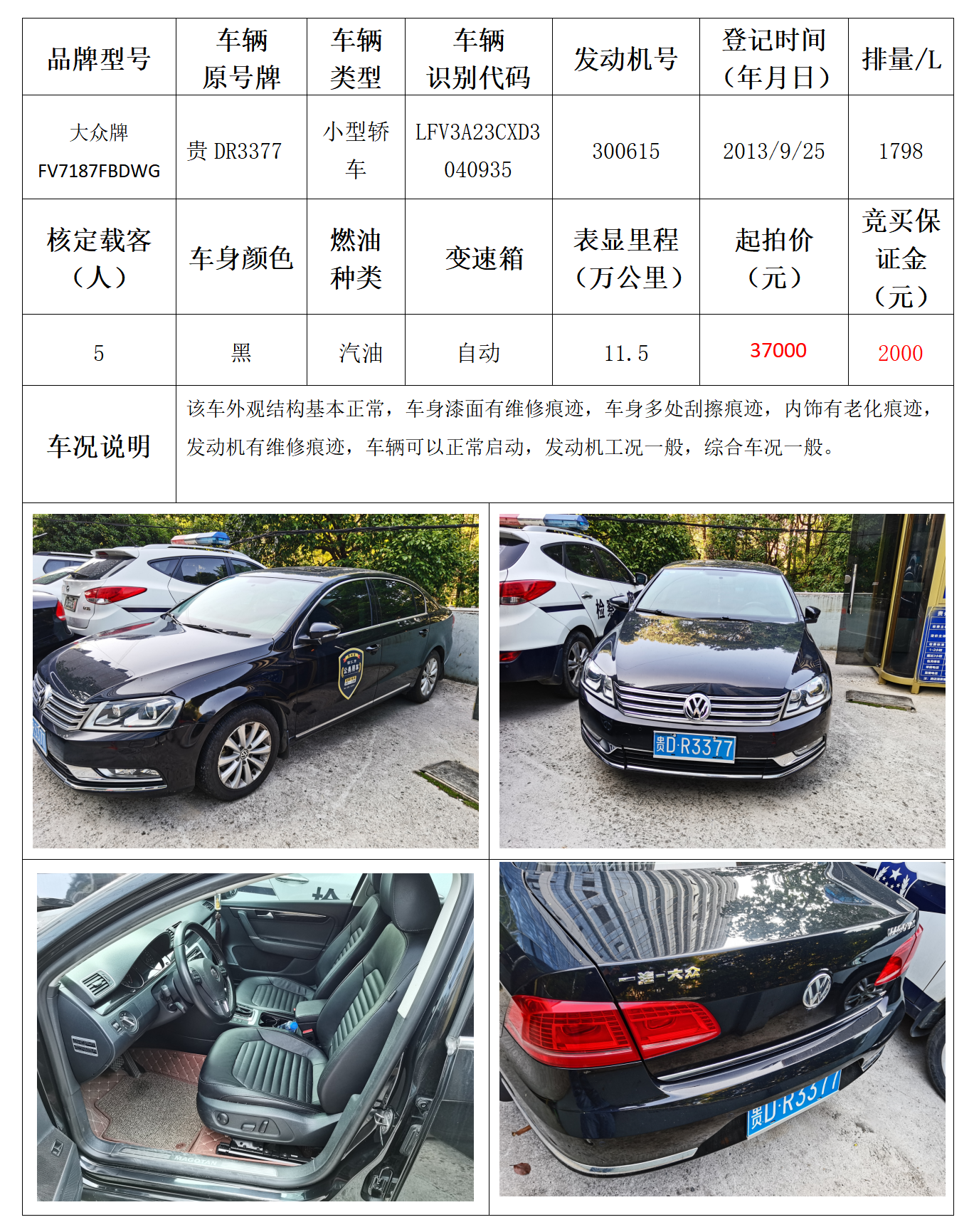 拍品编号13:帕萨特牌SVW7203EPD小型轿车一辆