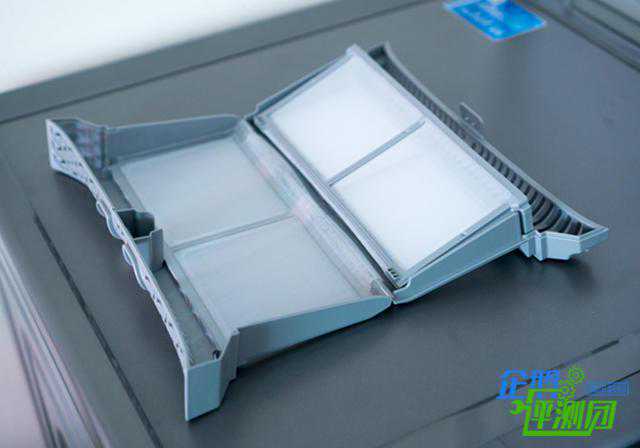 舱门扣的底部为一个塑料材质的绒毛过滤器,它的取出也十分方便,只需两个手指就能轻松的拿起来。绒毛过滤器是双层结构的设计,可以有效的阻隔绒毛,大幅降低滤网清洁的次数和时间。