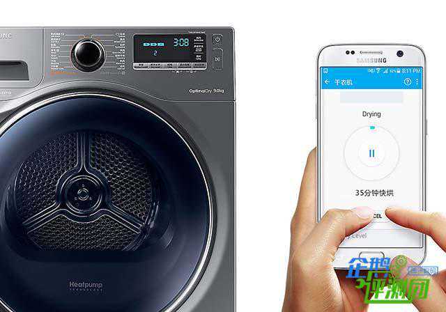 值得一提的是这款干衣机还是一台智能设备,可以通过手机APP控制干衣机。只需要在AppStore中下载SamsungSmartHome这款软件,根据APP的提示成功连接干衣机即可。连接成功之后,手机可以通过网络控制干衣机,随时随地查看干衣机的状态,控制干衣机的模式和运行状态。