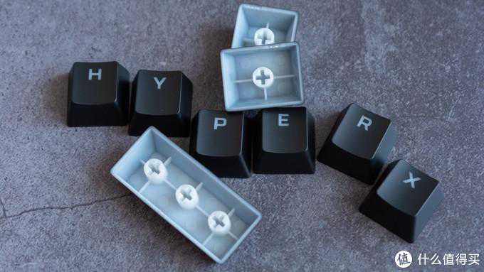 说完轴体就是键帽,目前来看主流的键帽也就PBT和ABS两种材质,POM材质踪迹难寻,PBT键帽有主要有热升华工艺、二色成型工艺、激光镭雕工艺,ABS键帽则是喷油镭雕工艺、二色成型工艺、丝网印刷/覆膜工艺为主;这里面推荐二色成型工艺和热升华工艺的制成键帽,字符耐久性更佳。至于所谓的无脑推PBT、PBT不打油,那是都是扯淡——PBT照样打油,只不过速度比ABS键帽要慢一些,而且打油速度也因人而异。