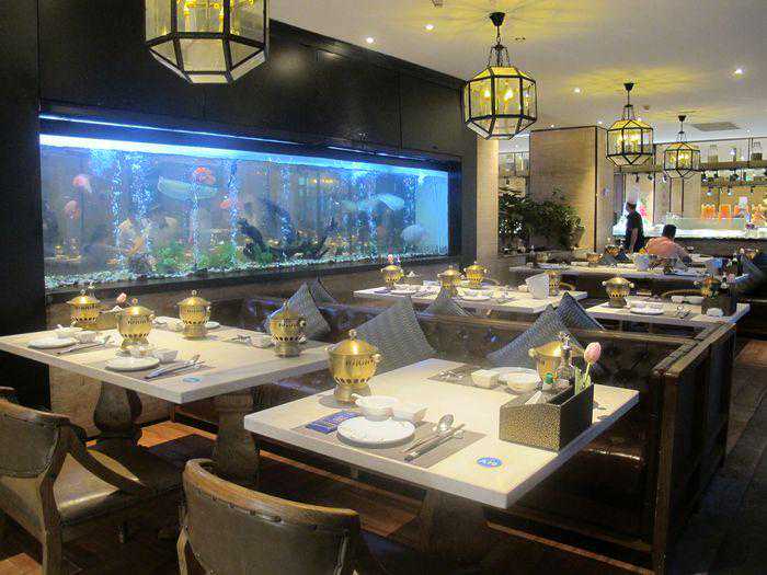 海鲜池里各色的海鲜,池中不断供氧,保证每一只都是生龙火虎。