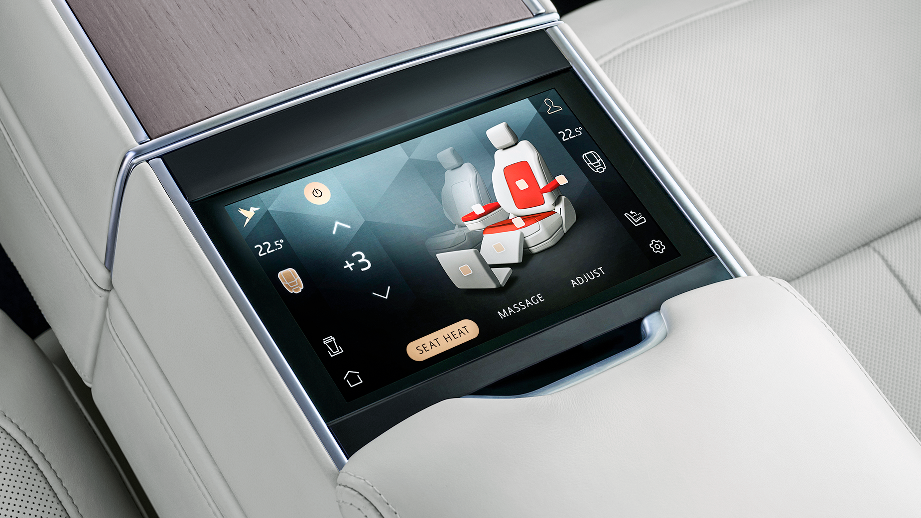 至于配置方面就完全不需要担心了,后排两块11.4英寸触控液晶屏可以浏览丰富的娱乐内容,后排中央扶手区的8英寸屏幕则可以控制后排的各种功能。值得一提的是,全新揽胜的第二排座椅,除了坐垫和靠背支持加热外,就连扶手区域都支持加热,可以说是非常贴心了。