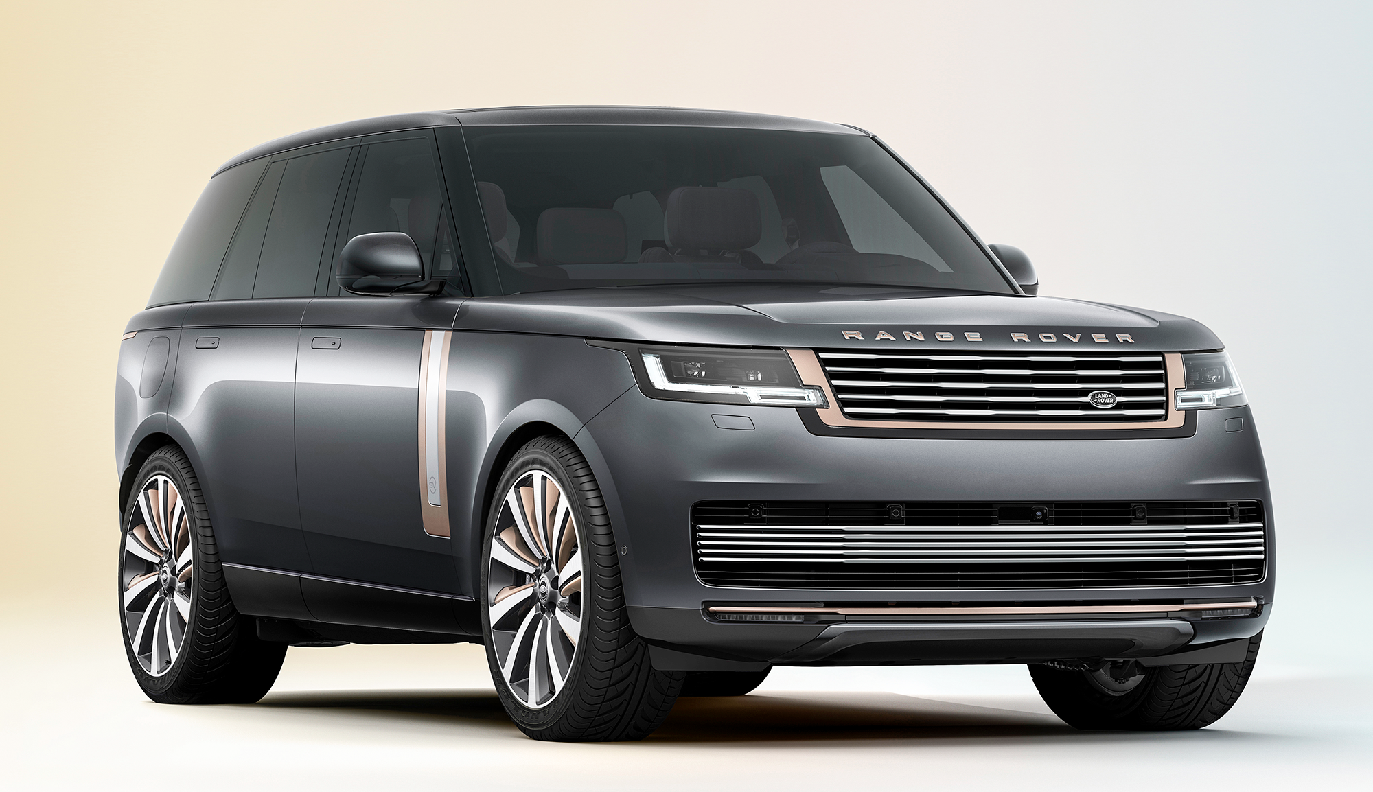 对于有财力购买揽胜的潜在用户来说,通常并不满足于购买官方推出的固定版本,而是希望自己的爱车可以有自己个性化的风格。此时,捷豹路虎旗下的SVO部门就诞生了。全新一代揽胜也提供SV定制版车型,只是这台官方推出的SV版仅仅作为一个“案例”展示,车辆外观采用SV专属的撞色设计。