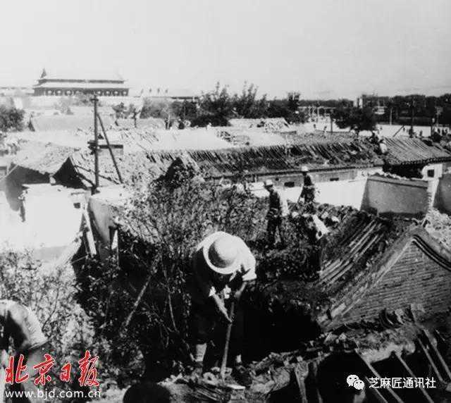 翻拍北京历史资料,大会堂原地旧状。图库。