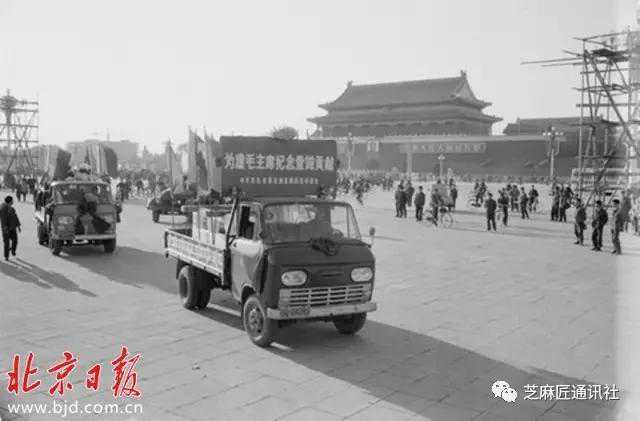 1977年5月14日,河北曲阳县栏板到京,支援纪念堂建设。胡敦志/摄