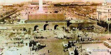 历经多次战火,北平解放前,天安门附近千步廊已然坍塌殆尽,广场上垃圾成山,已然不复当年光彩。
