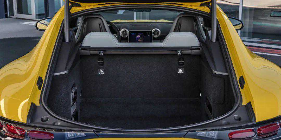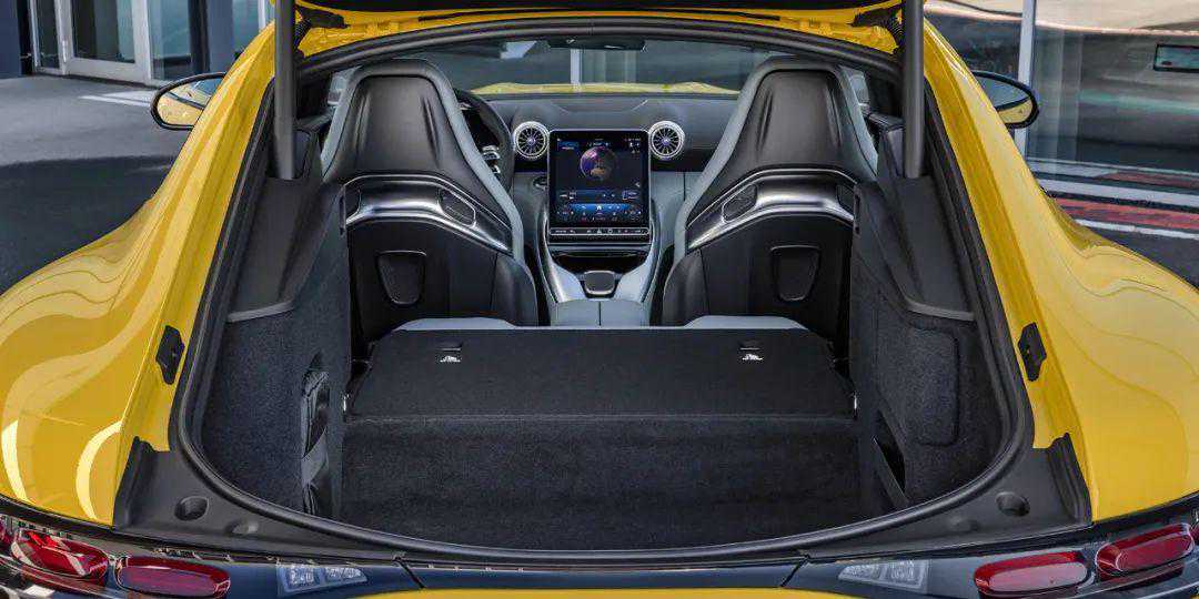 此外,自上代车型传承而来的后备厢也依旧出现在了新一代AMGGT上。得益于掀背式尾门的结构,AMGGT默认状态就拥有一个容积非常可观的后备厢空间,并且也提供了置物帘、锚点等设计。另外,车辆的后排座椅也能直接放倒,进而形成一个贯通式的空间。对于用户来说,开着AMGGT去滑雪、打高尔夫、钓鱼是完全可行的。