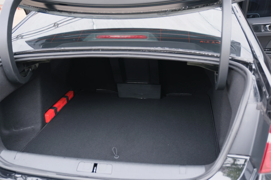 后备箱尺寸也很惊人,纵向深度达到1.2m左右,感觉能放下整个世界。