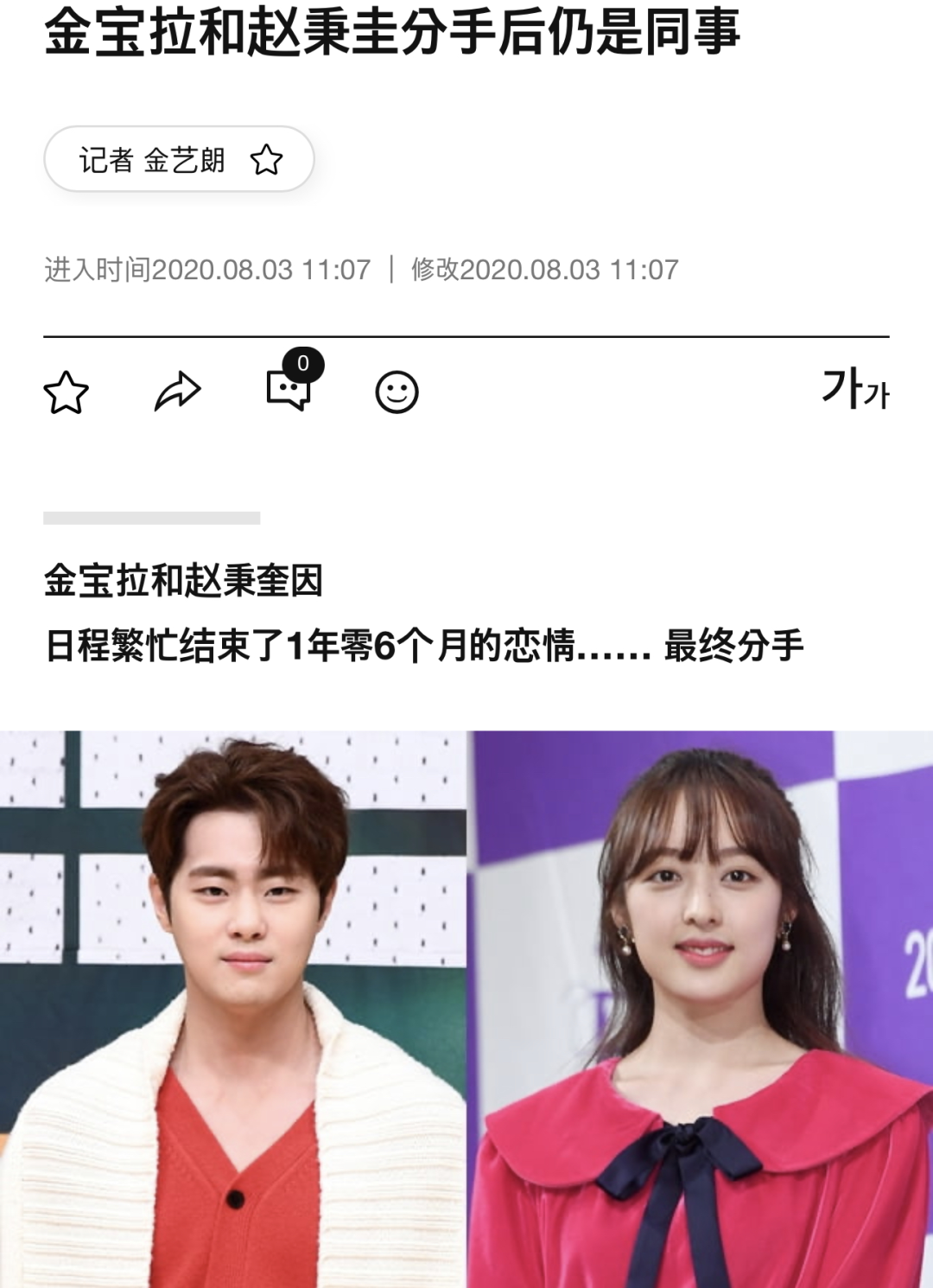 但相恋一年半后,经纪公司就宣布了他们分手的消息,原因也是经典的南韩分手模版之一: