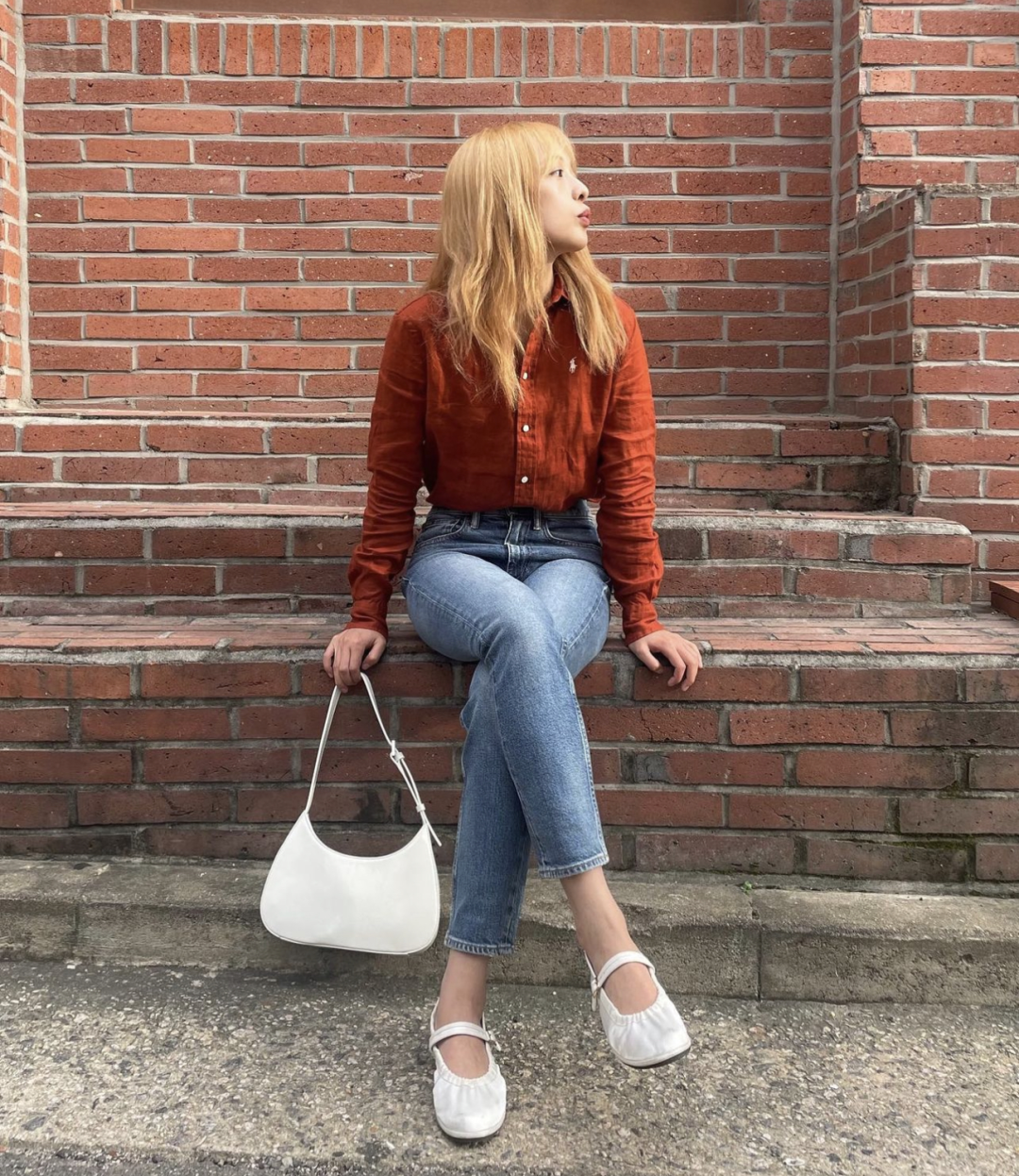 复古polo衫+牛仔裤、