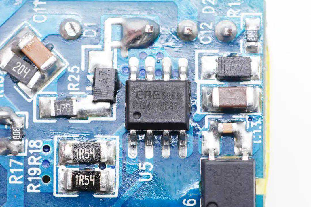 康源CRE6959UHEA-S8采用高密度、小体积设计,外围元件少,无需外接LDO,节省空间,可有效降低成本,具有恒功率输出功能,并可在无需任何散热片及宽电压条件下输出20W的额定功率。实测板端效率平均88%以上,达到六级能效标准。