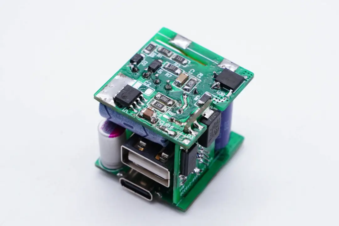 针对20W-27W市场,钰泰推出了ETA8056/8058两款,集成两款低阻抗的高压功率管IC。基于该芯片开发的0W方案PCB实测尺寸:25mm*23mm*22mm,仅硬币大小。