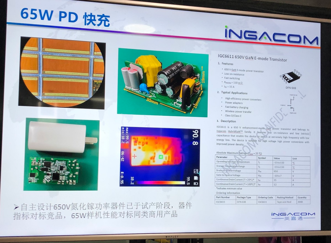 目前,英嘉通已经基于自家氮化镓功率器件推出了65W氮化镓快充参考设计,各项指标性能已经达到业界主流水准。