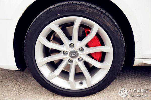 红色涂装的4活塞卡钳,高功率版的专属,相比17款的银色,更有视觉冲击力,要是再喷上奥迪的字样就够完美了,brembo也可以。而且刹车盘要比低功率的大上一圈。
