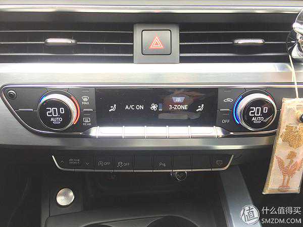 空调面板也是内饰的一大亮点,特别是这一排全镀铬按键,带触摸显示,手指放上去图标会变大,按下去或抬上来选择功能,其它都好懂,右侧第二个(写着3-zoom)需要研究一下。