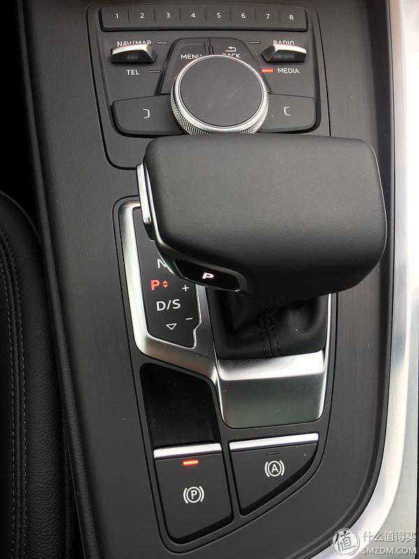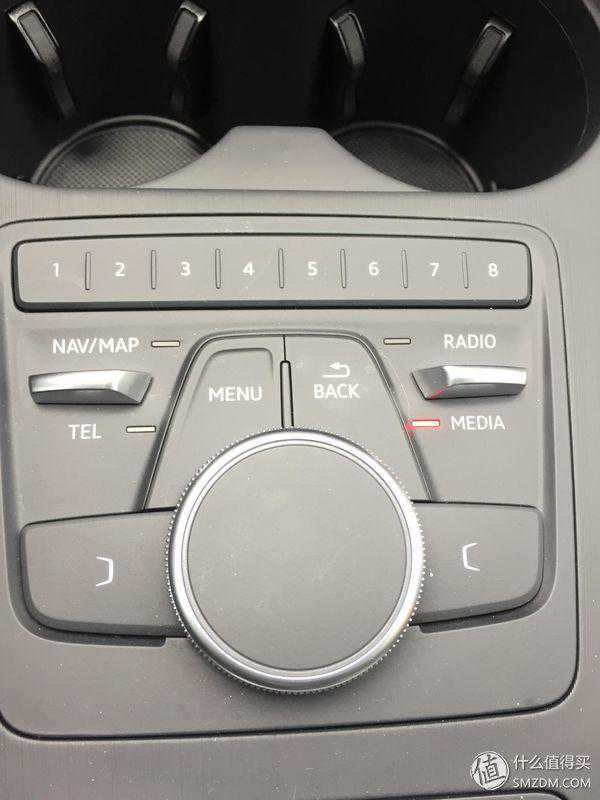 奥迪MMI系统,这个是减配版,所以大圈盘左右两侧的按钮没有镀铬,旋钮也是没有手写功能的,想要上述功能,买带导航的版本就可以了。旋钮手感太棒了,扭动它的时候让我有一种开保险箱的感觉,除了转,还可以上下左右的拨。