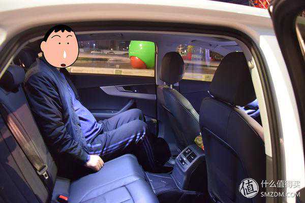 超过2900的轴距,后排是比较宽敞的,我183的个子前排调整好,后排还能跷个二郎腿。只是座椅有点硬,这是奥迪一惯的尿性,还有靠背角度有点直。